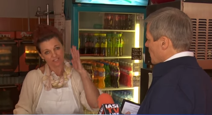 La un moment dat, femeia nu a mai vrut să stea de vorbă cu Dacian Cioloș și l-a invitat pe fostul premier … afară din magazin.