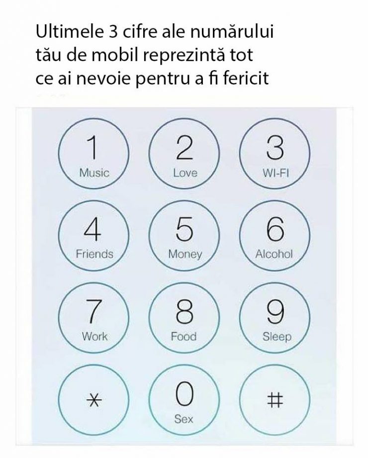 E vremea pentru puţin amuzament! Ştiai? Ultimele trei cifre ale numărului tău de telefon îţi arată de ce ai nevoie pentru a fi fericit întreaga viaţă.